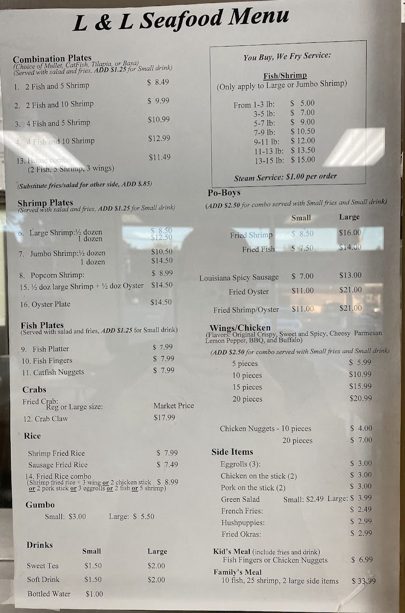 L & L Fresh Seafood Menu